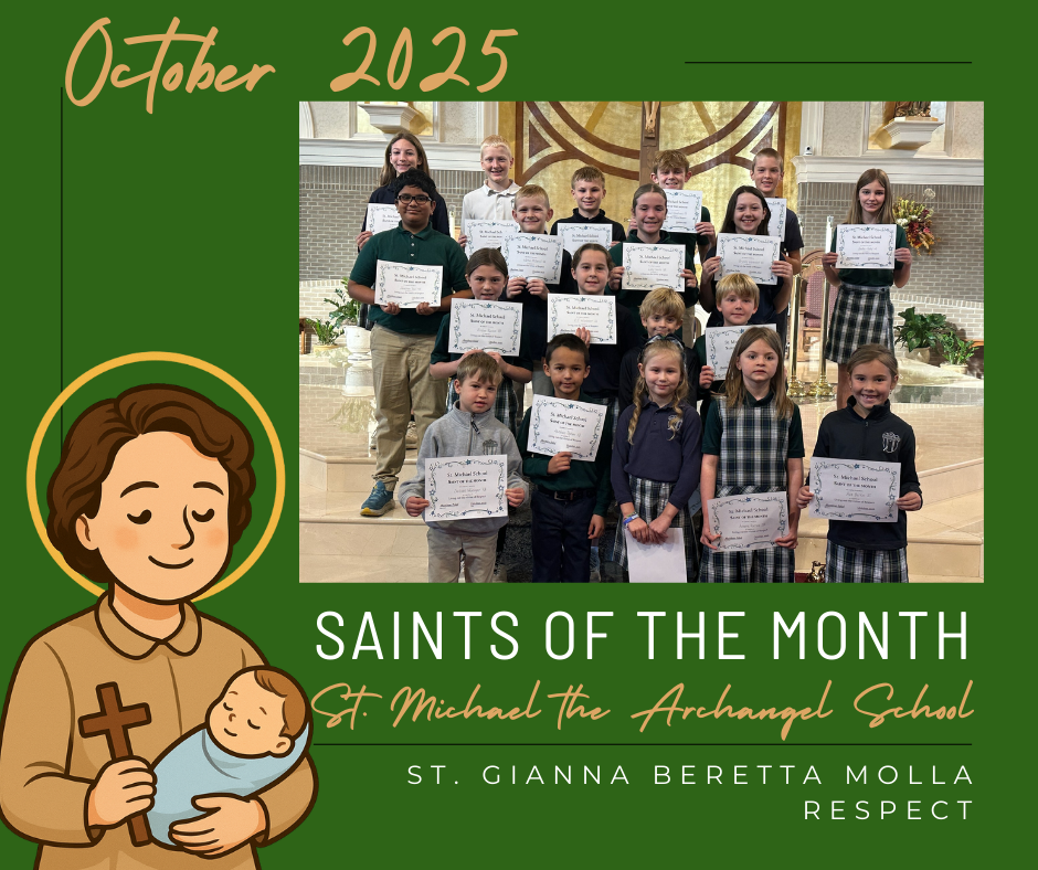Saint Michael students begin their school day in prayer and pledge. In addition, we follow the diocesan curriculum guidelines for religious instruction. Our belief is that the family is the first source of faith in our students lives. At school, we continue to encourage students to pray daily and to live in accordance with the teachings of our faith.